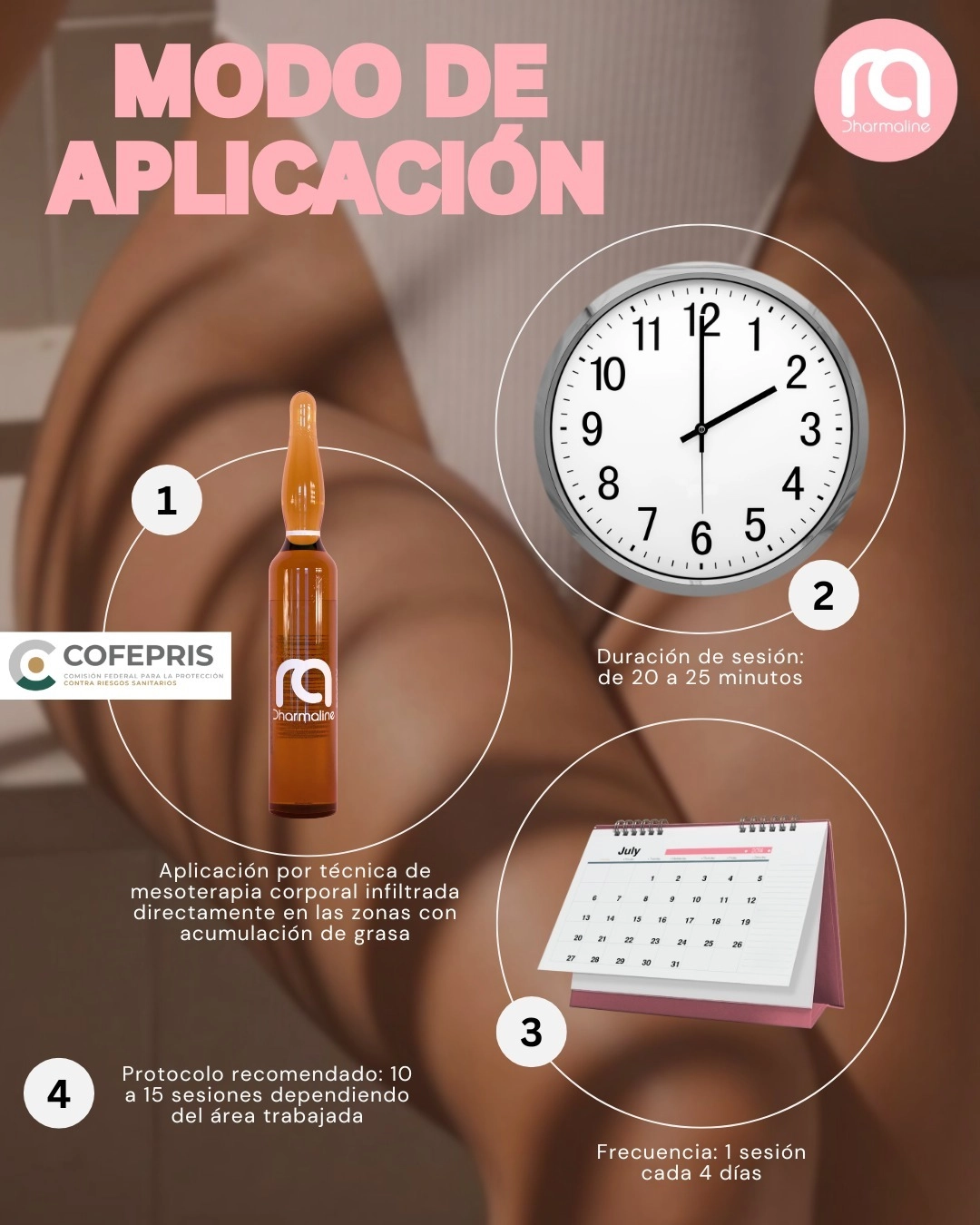 📖 Instrucciones detalladas para su uso infiltrado mediante técnica de mesoterapia corporal, con parámetros de profundidad y combinación segura de zonas.