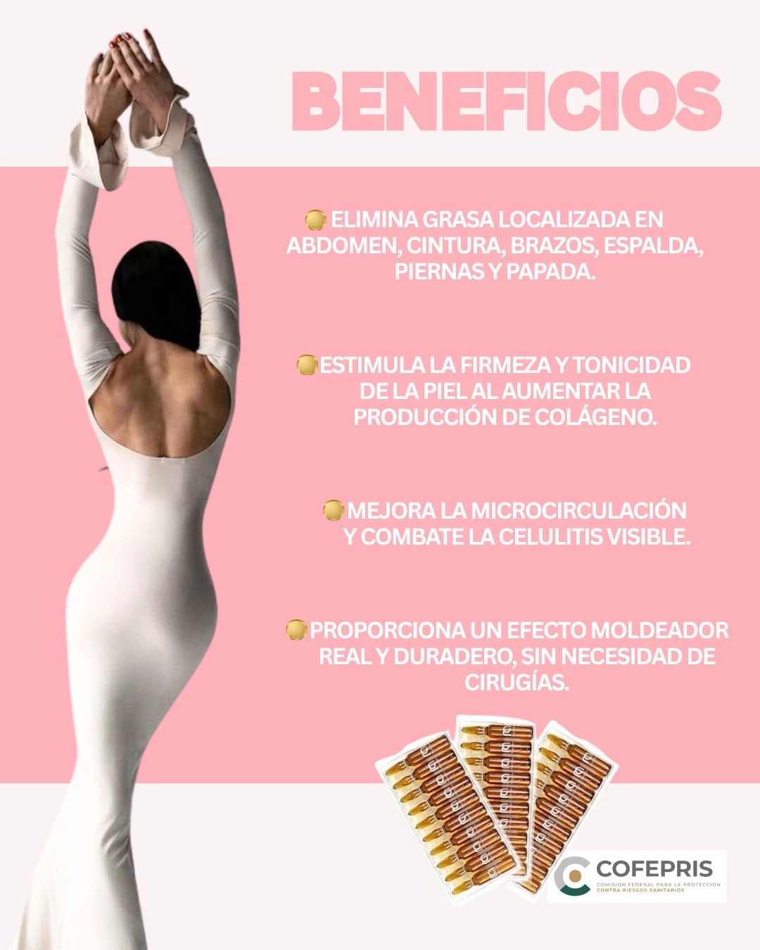 ✔️ Formulación enzimática lipolítica con acción directa sobre el tejido adiposo.