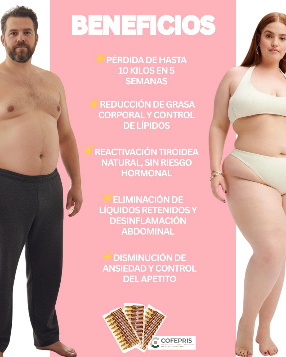 ✅Reducción progresiva de peso corporal, pérdida de grasa abdominal y mejora del metabolismo general.